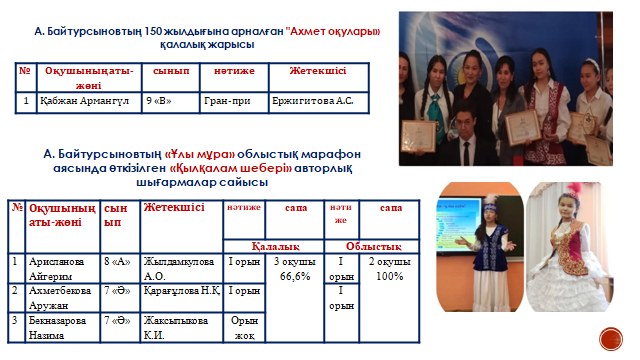 20 қараша күні № 21 гимназиясында оқушылардың “BOLASHAQ” облыстық пікірсайыс турнирінің қалалық кезеңі өтті. Мектебіміздегі “Сөзмерген” пікірсайыс үйірмесінін атынан “Элита” фракциясы қатысып жүлделі lll- орынды иеленіп қайтты. Оқушылармызға алдағы уақытта толағай табыстар тілейміз.