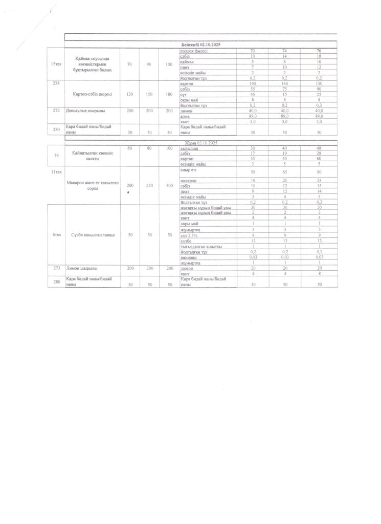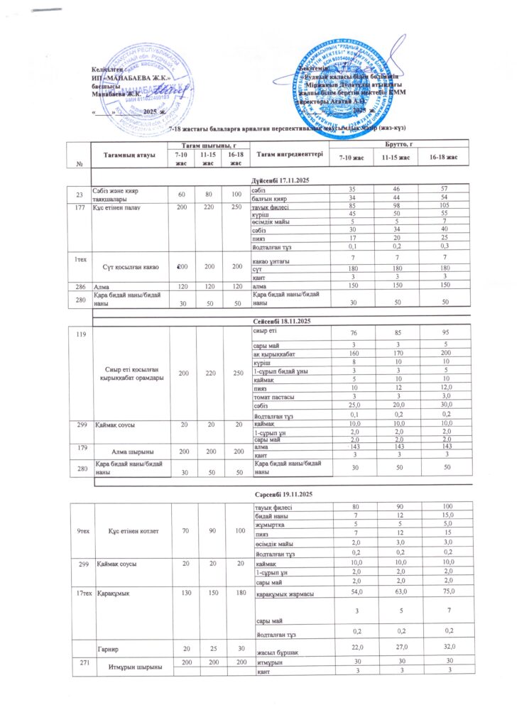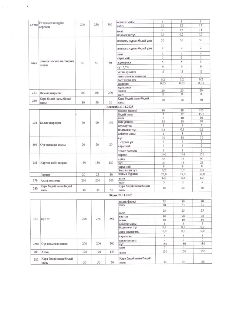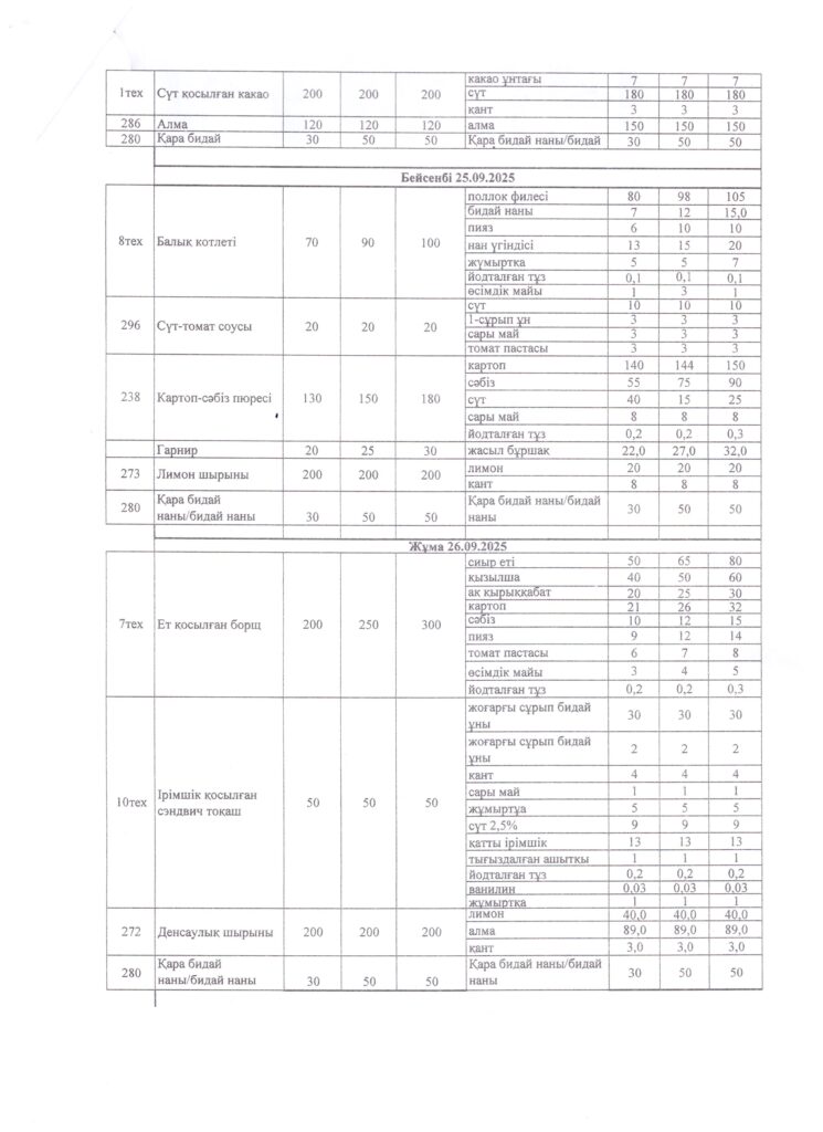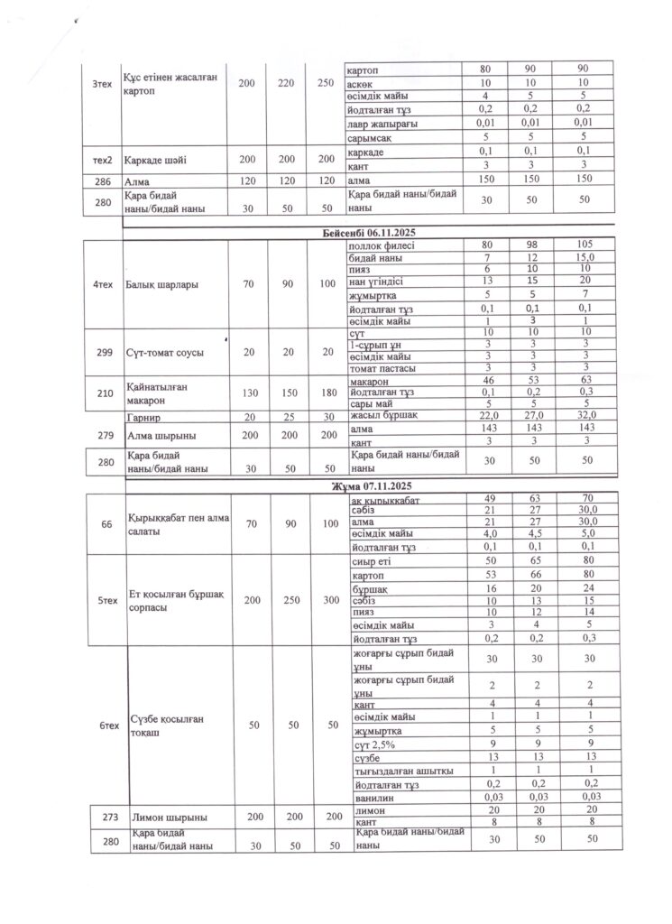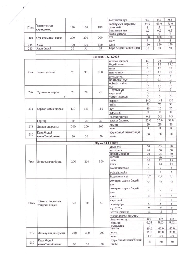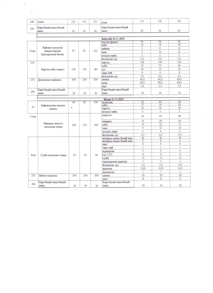 Оқушылардың тамақтану кестесі(откроется в новой вкладке)