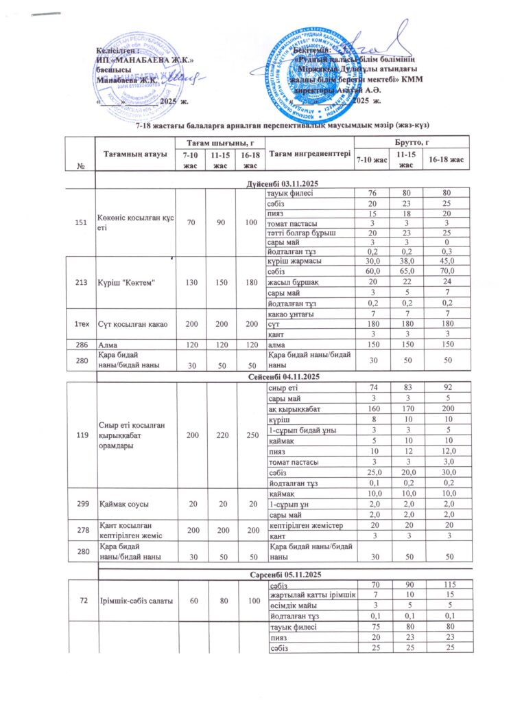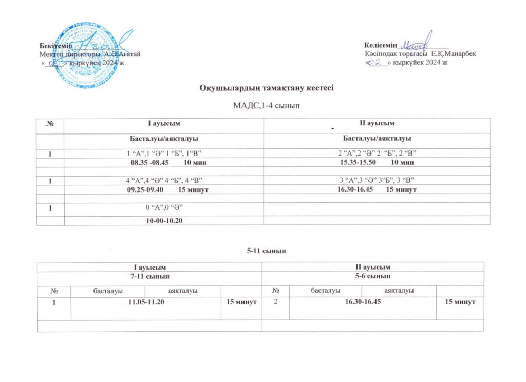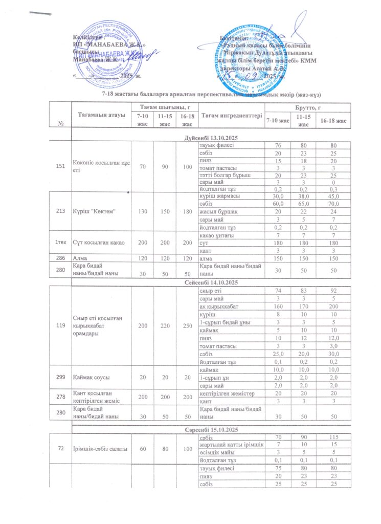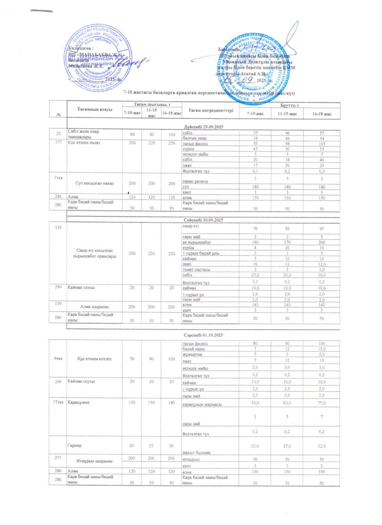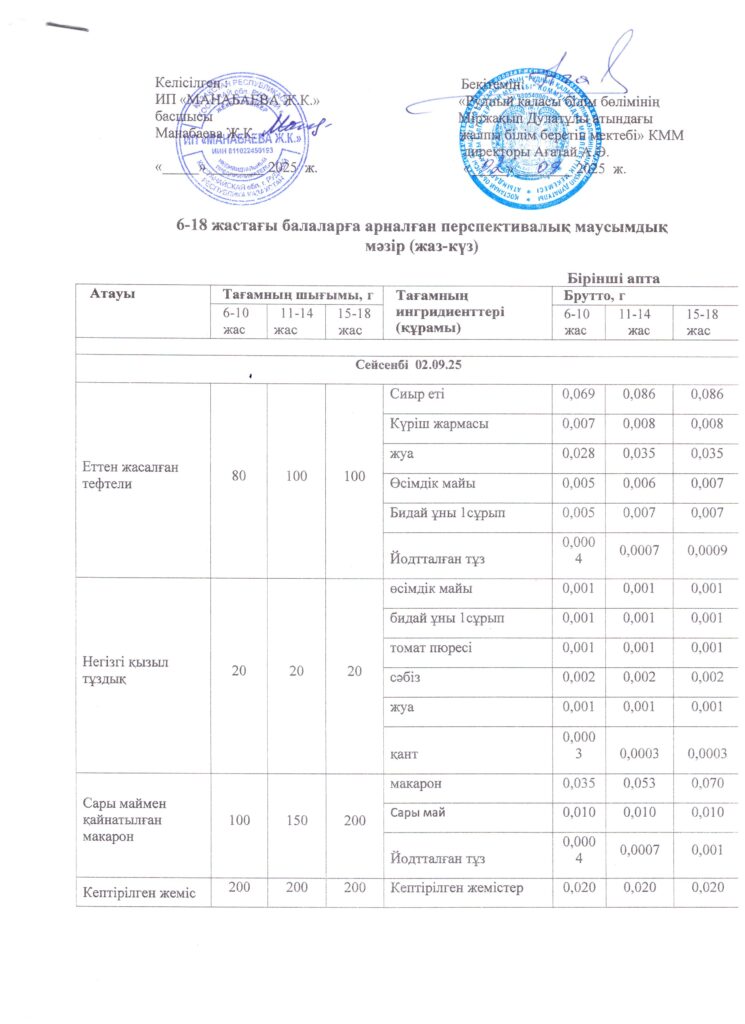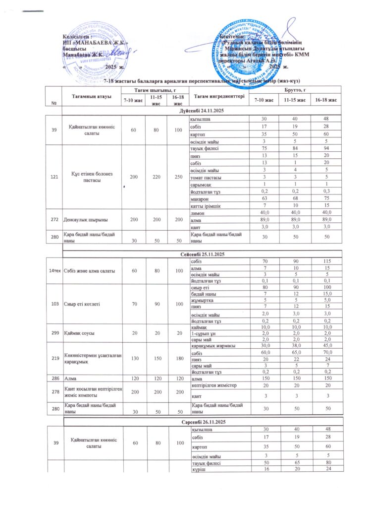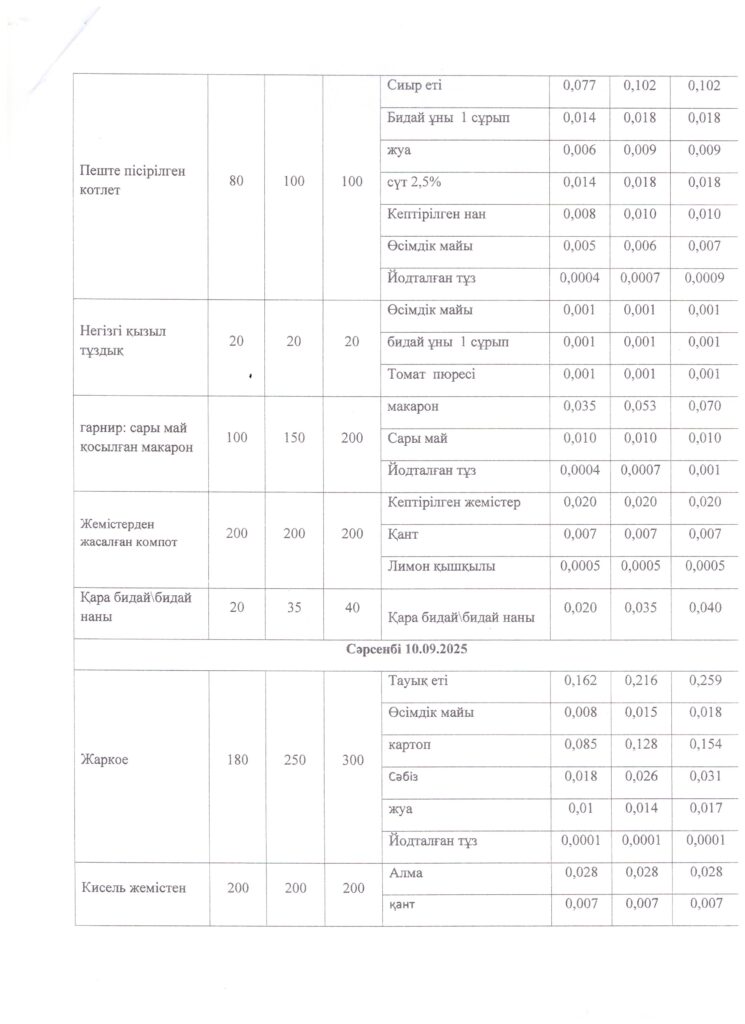 Оқушылардың тамақтану кестесі(откроется в новой вкладке)