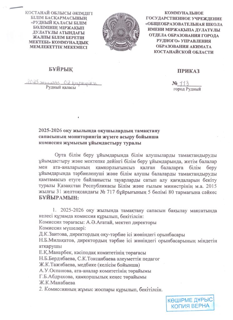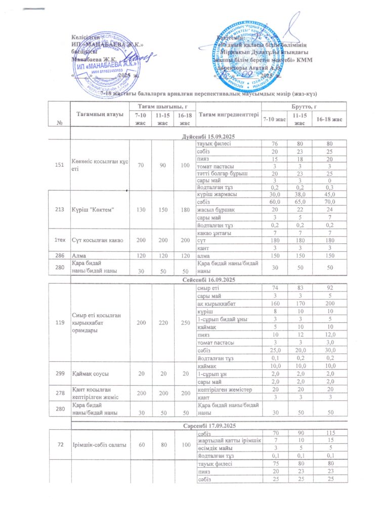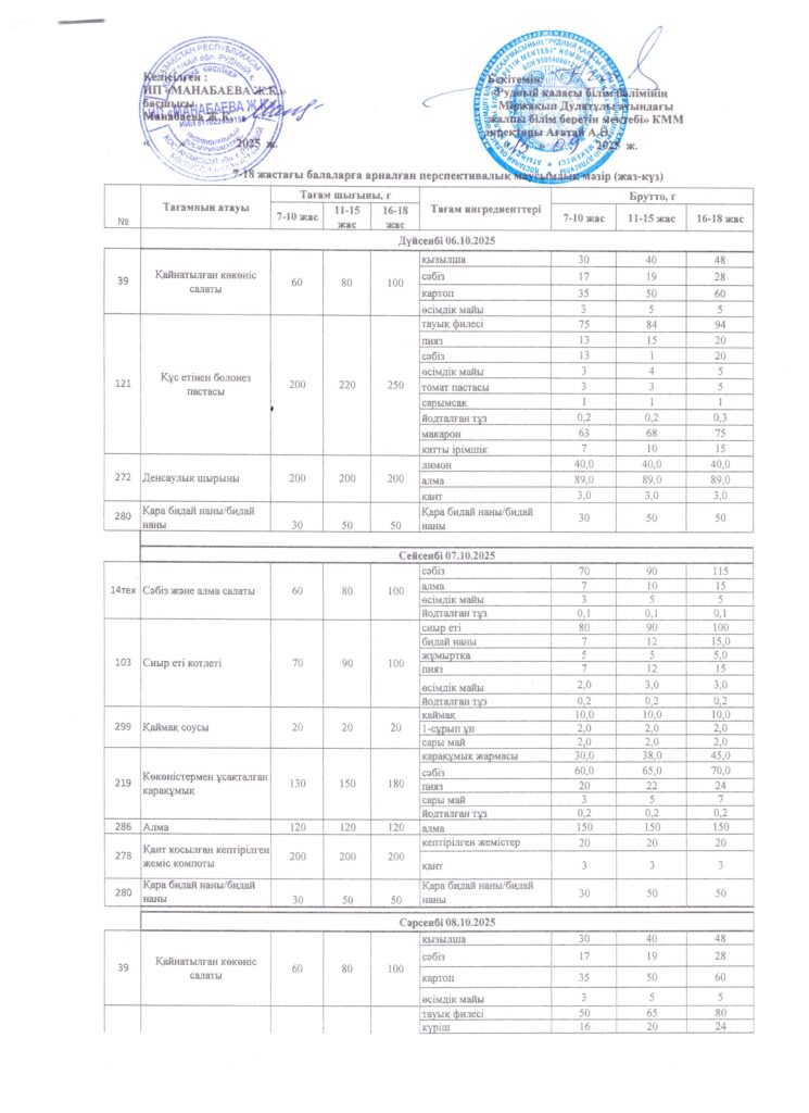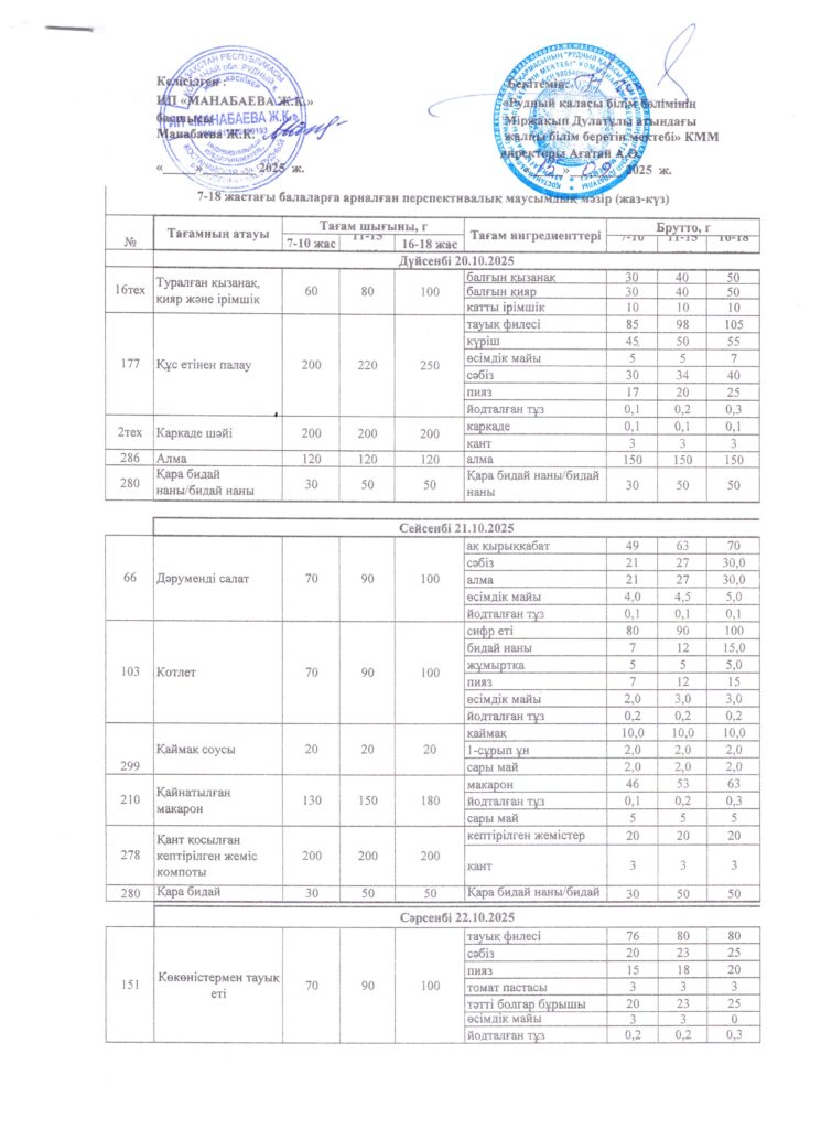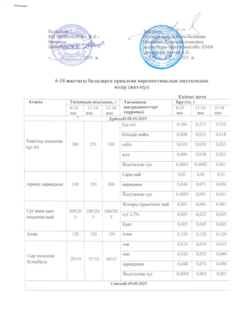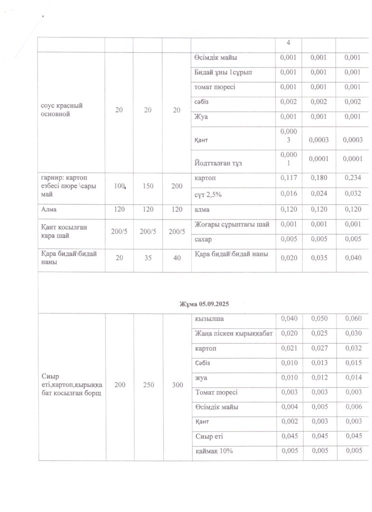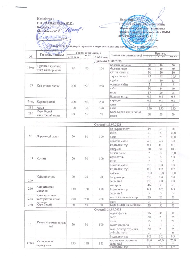 Оқушылардың тамақтану кестесі(откроется в новой вкладке)