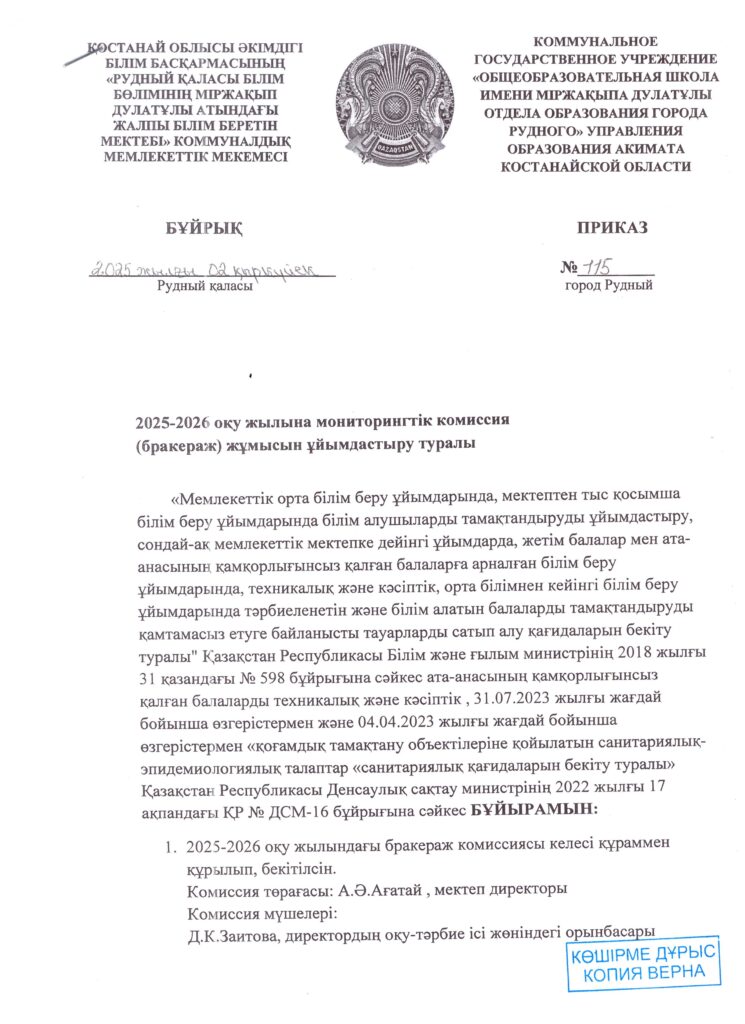 07.10.25 жылы Брокираж комиссиясының мүшелерімен бірге тамақтану ас блогын тескеру жүргізілді.