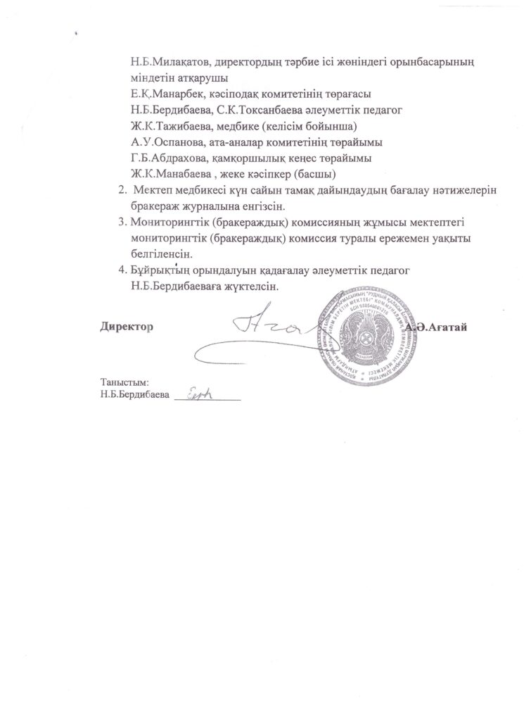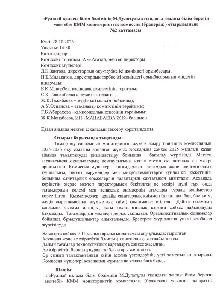 Мониторингтік комиссия (бракераж) отырысының хаттамалары