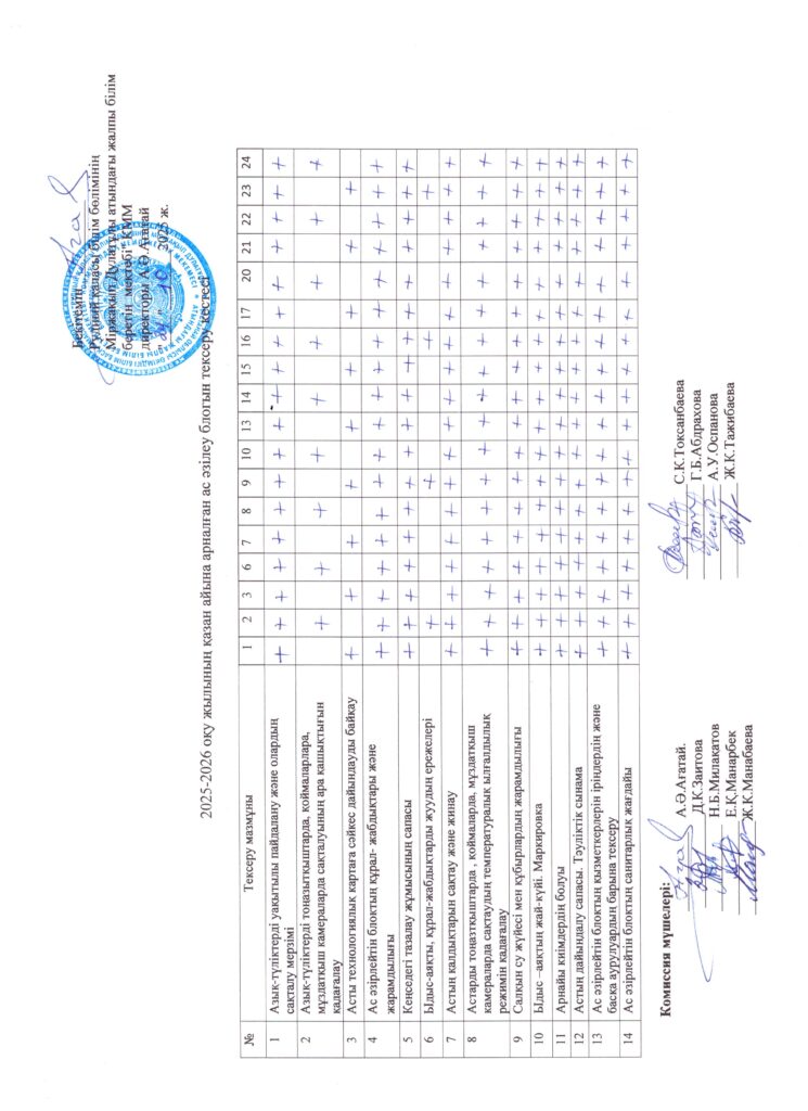 2023-2024 оқу жылында ас әзірлеу блогын тексеру кестесі