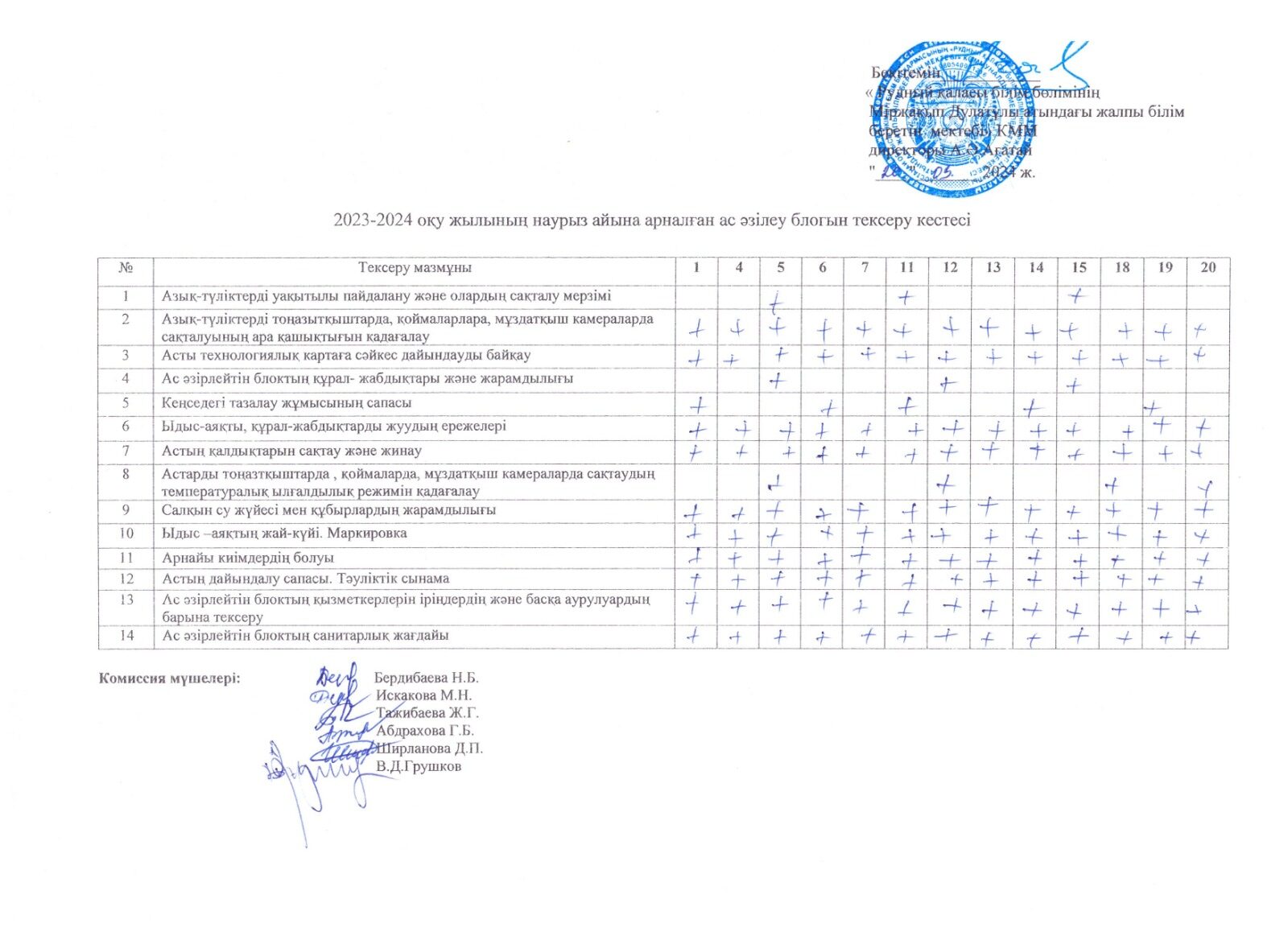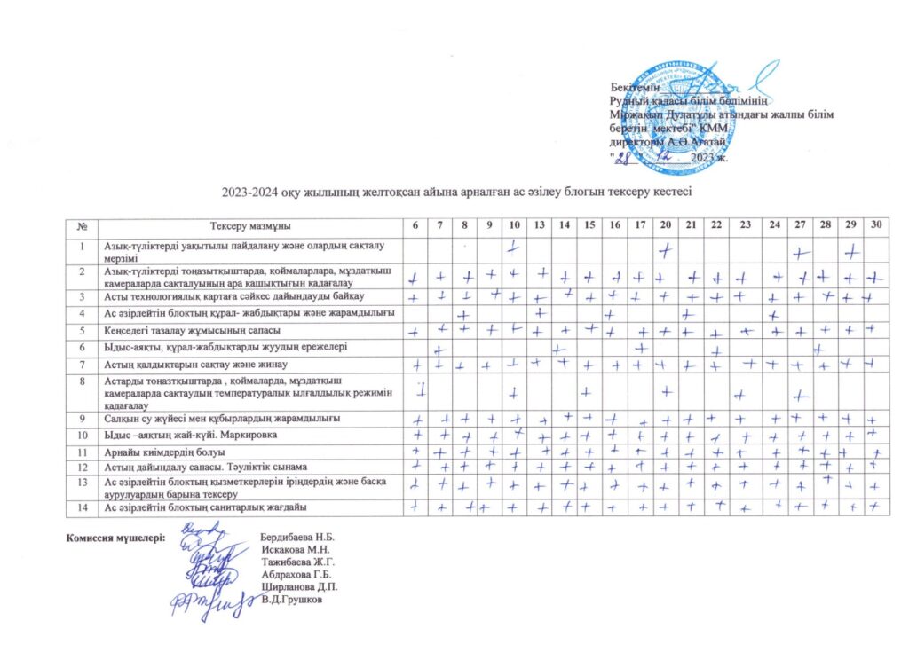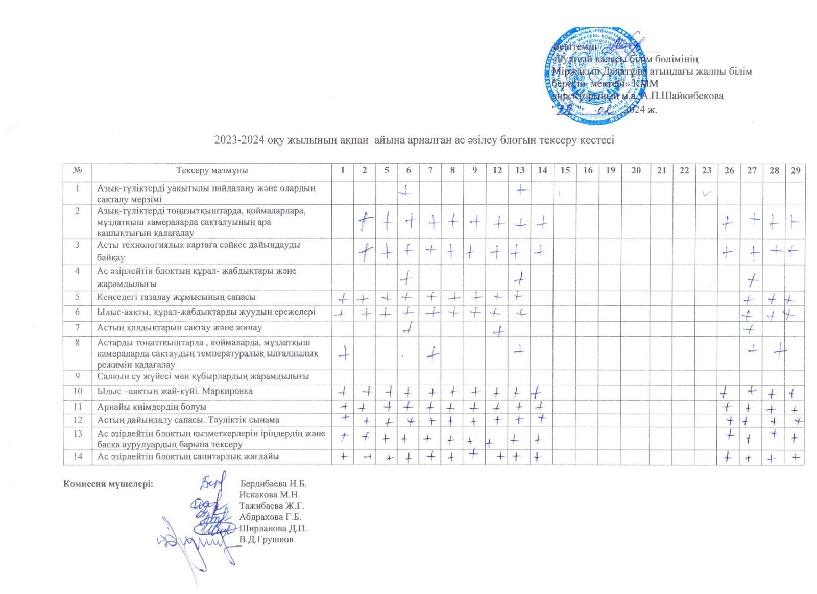 2023-2024 оқу жылында ас әзірлеу блогын тексеру кестесі